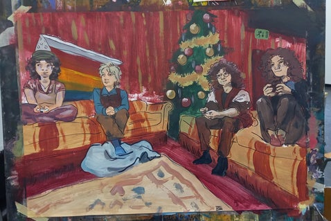 I don't often work with paint so I'm very glad I'm getting forced to do it sometimes in the drawing studies. I love the texture and how the colors mix. Also just very fun to make portraits of my classmates.