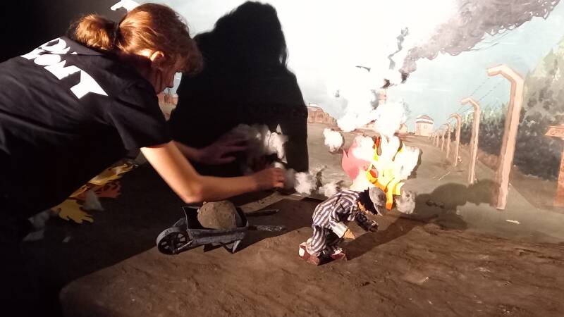 I made the big background of Birkenau. The background was very back so quite difficult to make. I also made a piece of the wall but we decided that the animation was going to be too long so we had to cut a lot.