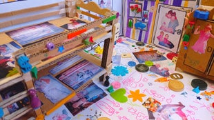 I wanted to make a stopmotion animation again because I had such a great time during the stopmotion minor. Me as a child absolutely adored making diorama's. So I made my childhood bedroom as if it was a kind of diorama. I wanted the dream to have a very childlike and innocent vibe so I used bright colors, toys, childlike drawings and lots of glitter. So when you first look at it it looks pretty fun and cute but when you look further you will probably notice that some of the child's drawings depict pretty traumatic things.